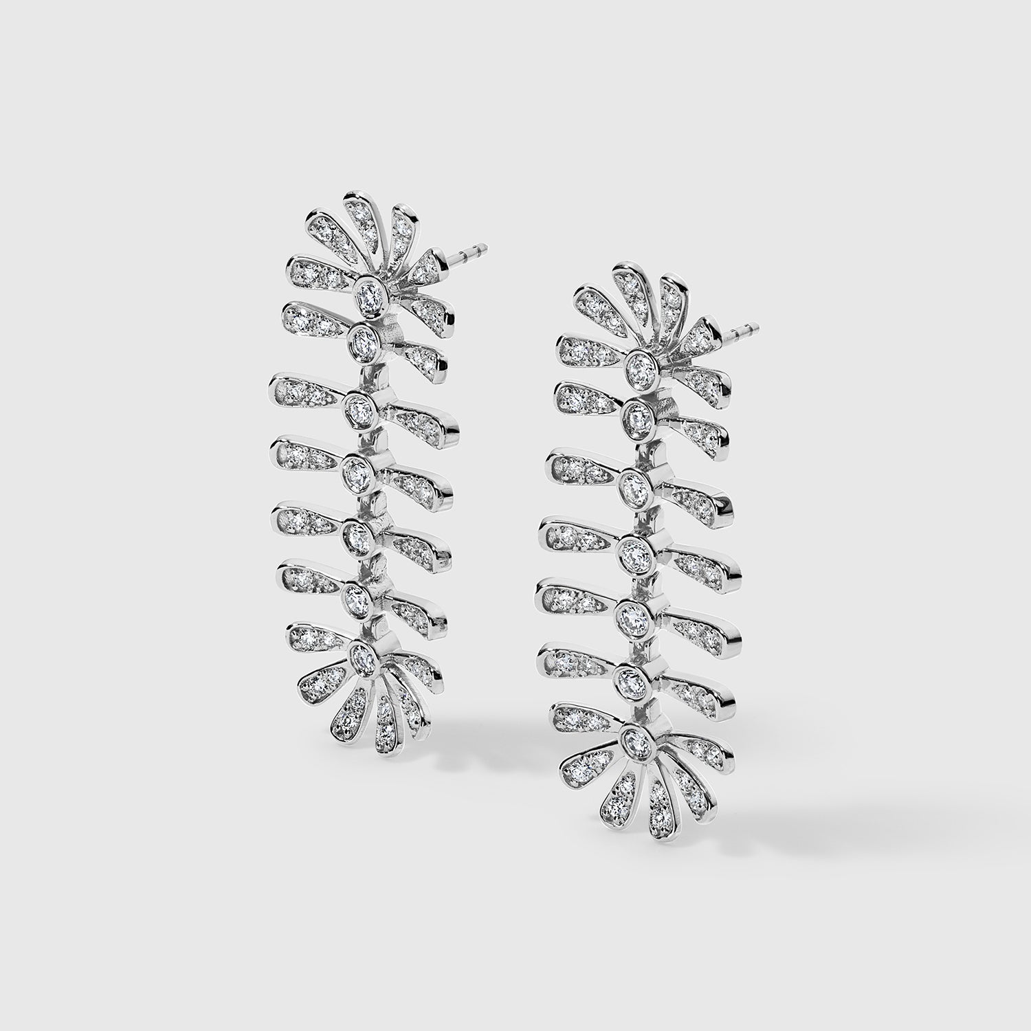 Metropolis tennis articulated drop earrings. 1.3 carats of near colorless, very slightly included diamonds.