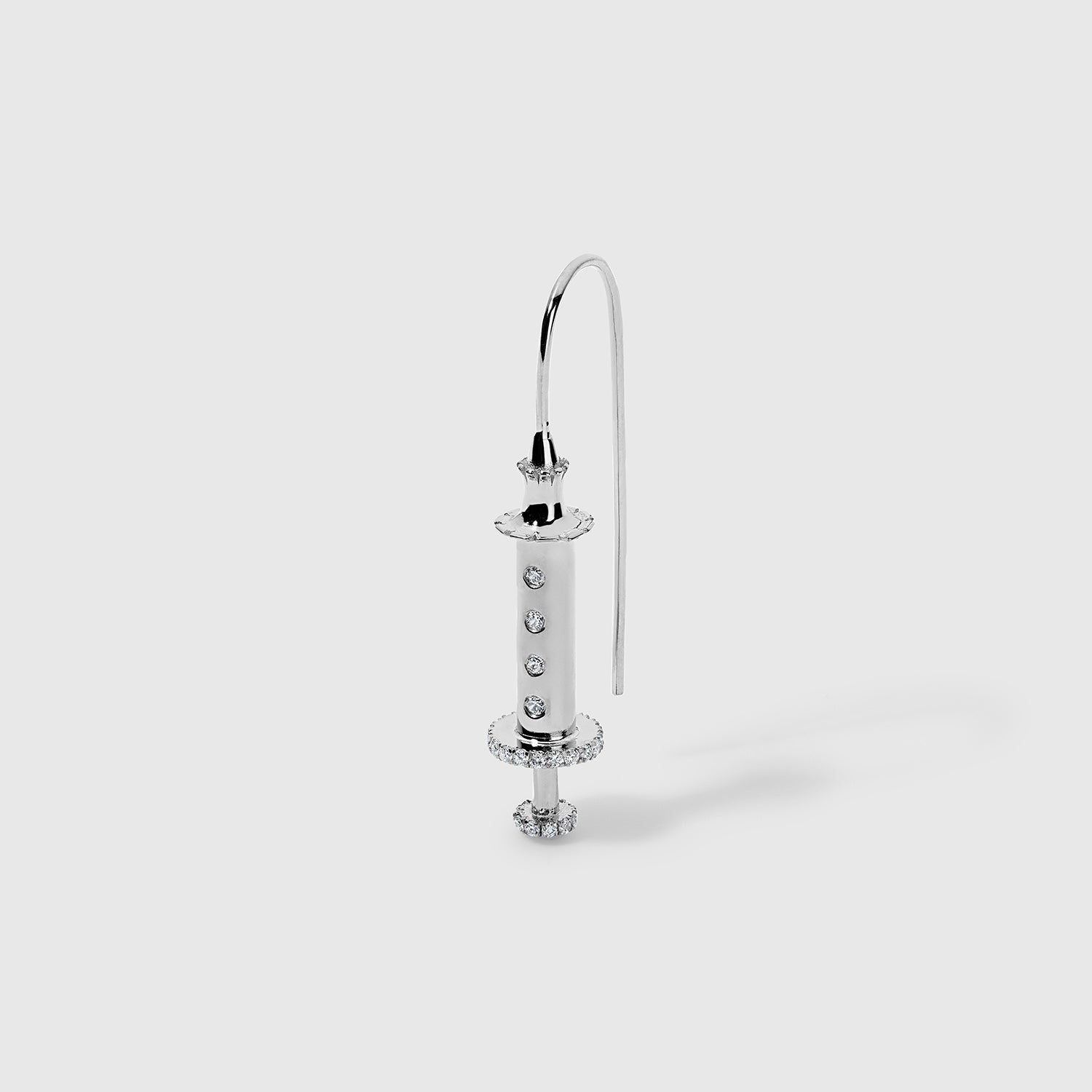Sema "G' Syringe Ear Hook, approximately 0.20 carats of near colorless, very slightly included diamonds in 18k yellow gold.