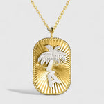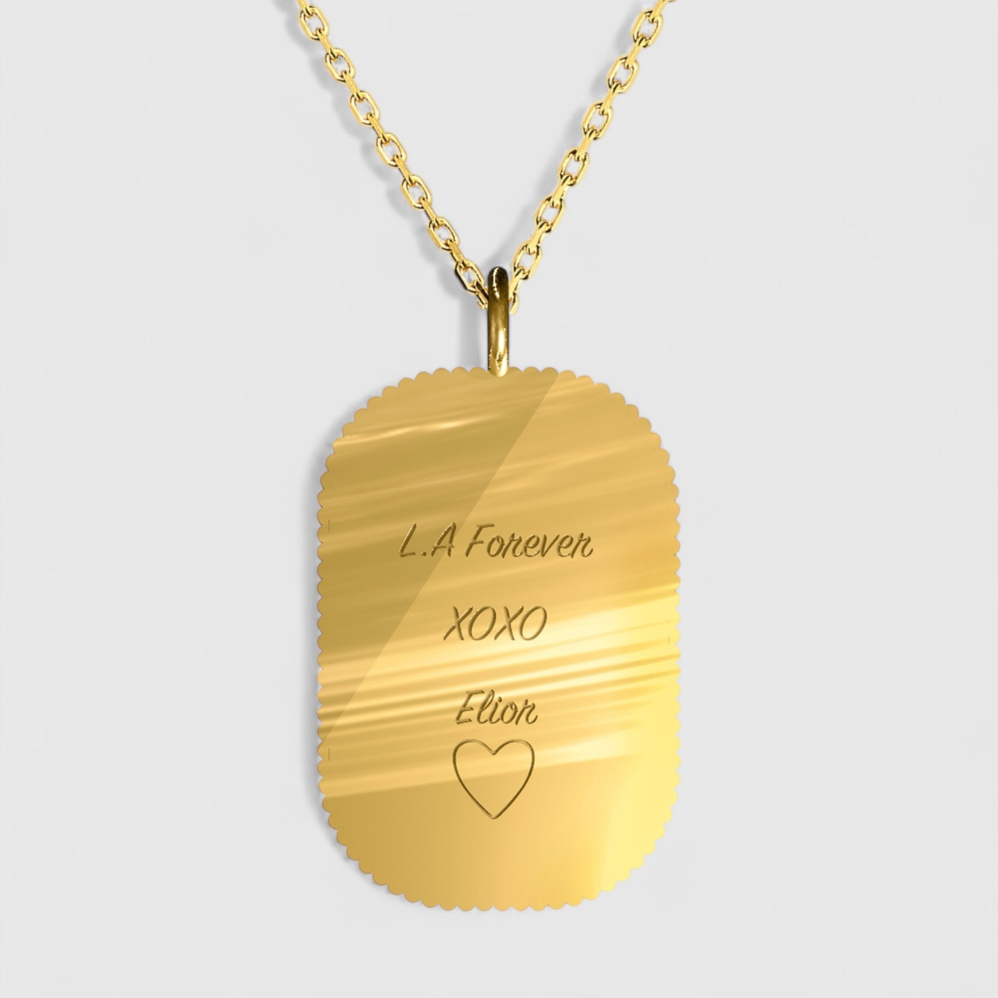 Embodying the bold spirit and endless sunshine of Los Angeles, the City of Angels Dog Tag Pendant is a striking tribute to the city’s unique energy and vibrant culture. Crafted in a sleek dog tag shape, the pendant features ridges that radiate outward, reminiscent of the bright rays of the LA sun. Atop the tag, a palm tree stands as a symbol of the iconic landscapes that define the city.