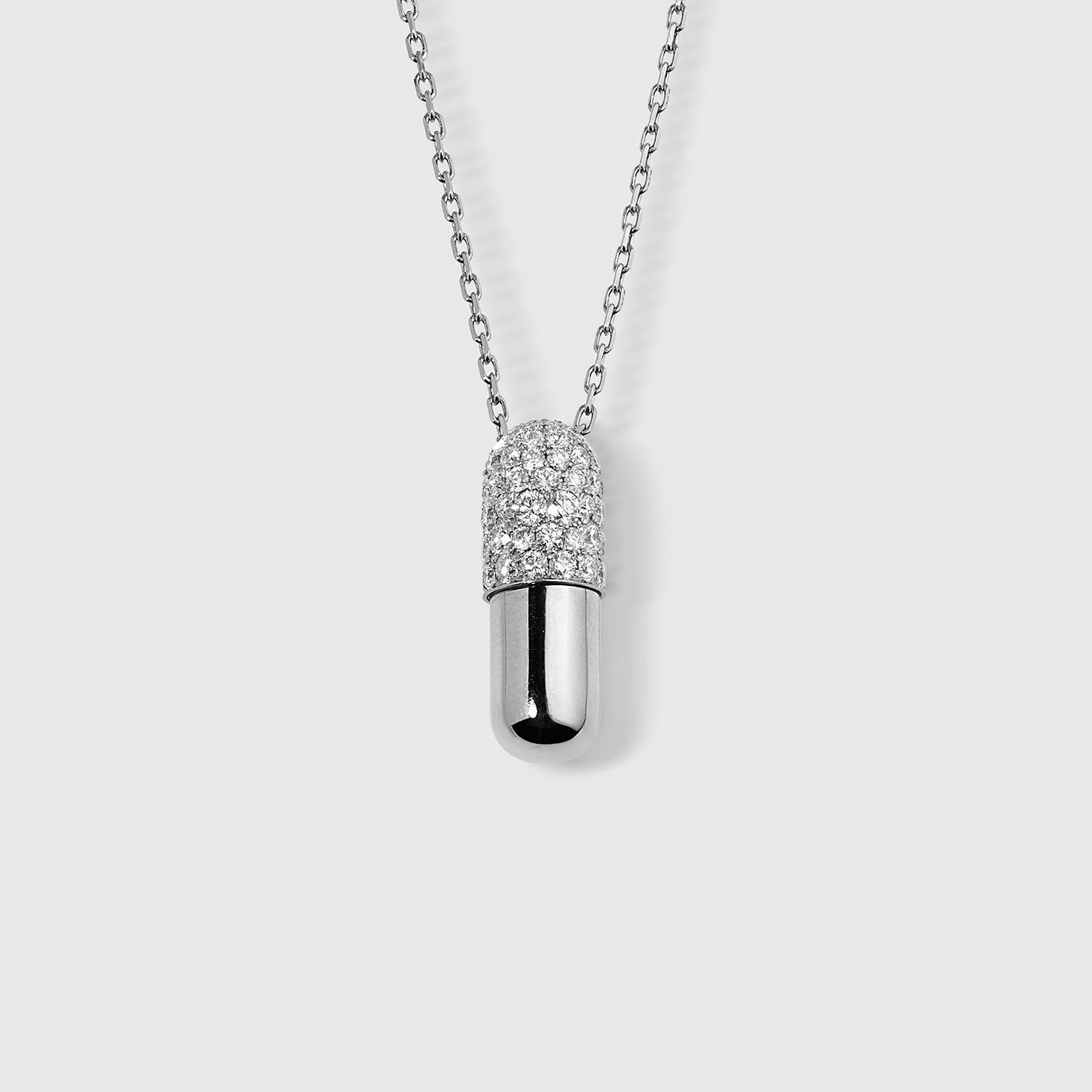 Large Diamond Pill Pendant in White Gold