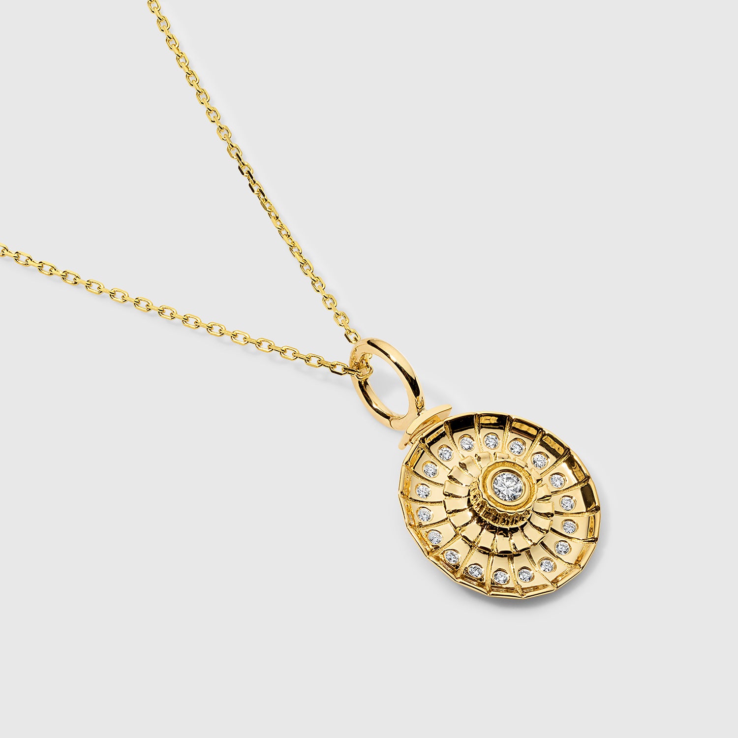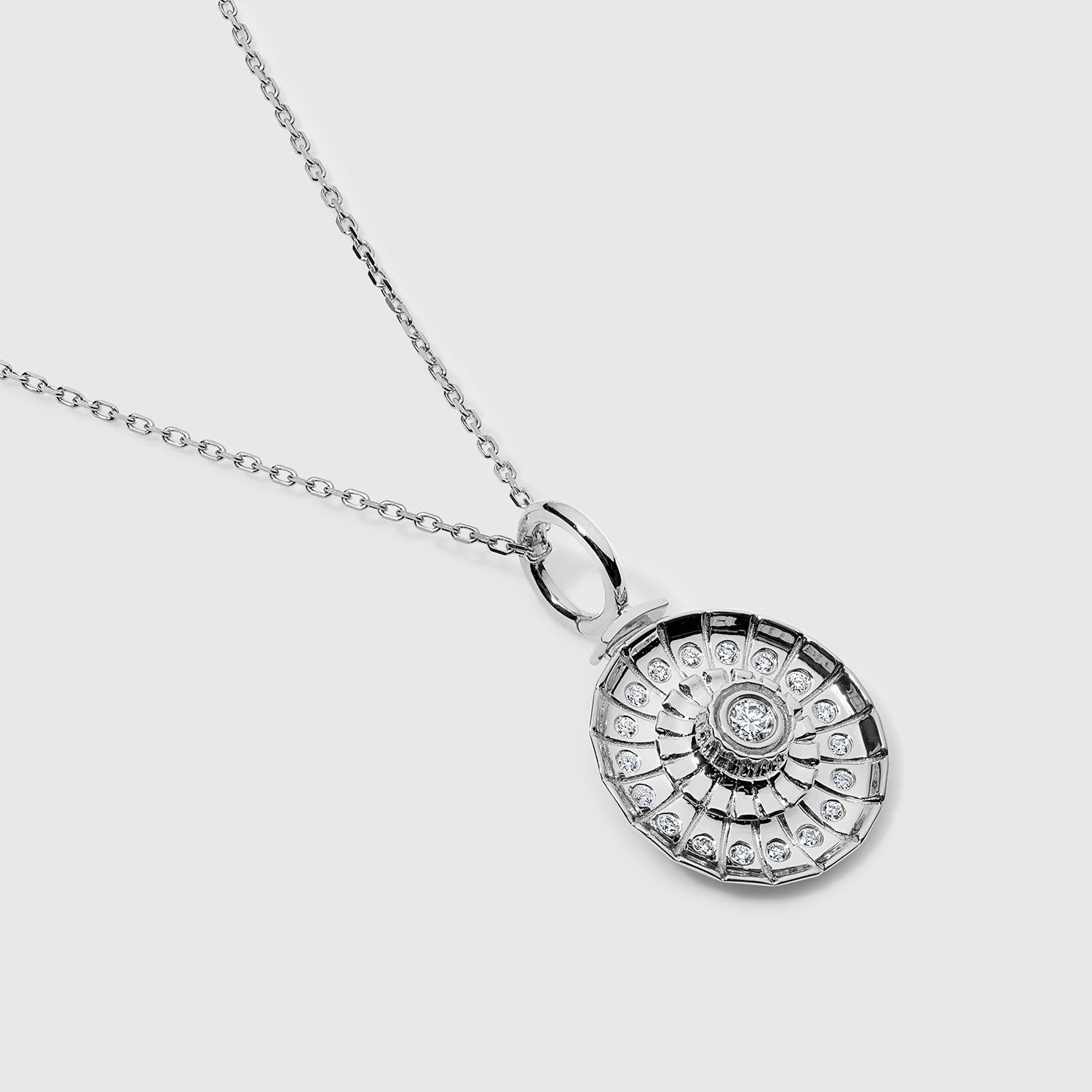 Metropolis spin charm pendant, set with approximately 0.32 carats of near colorless, very slightly included diamonds.