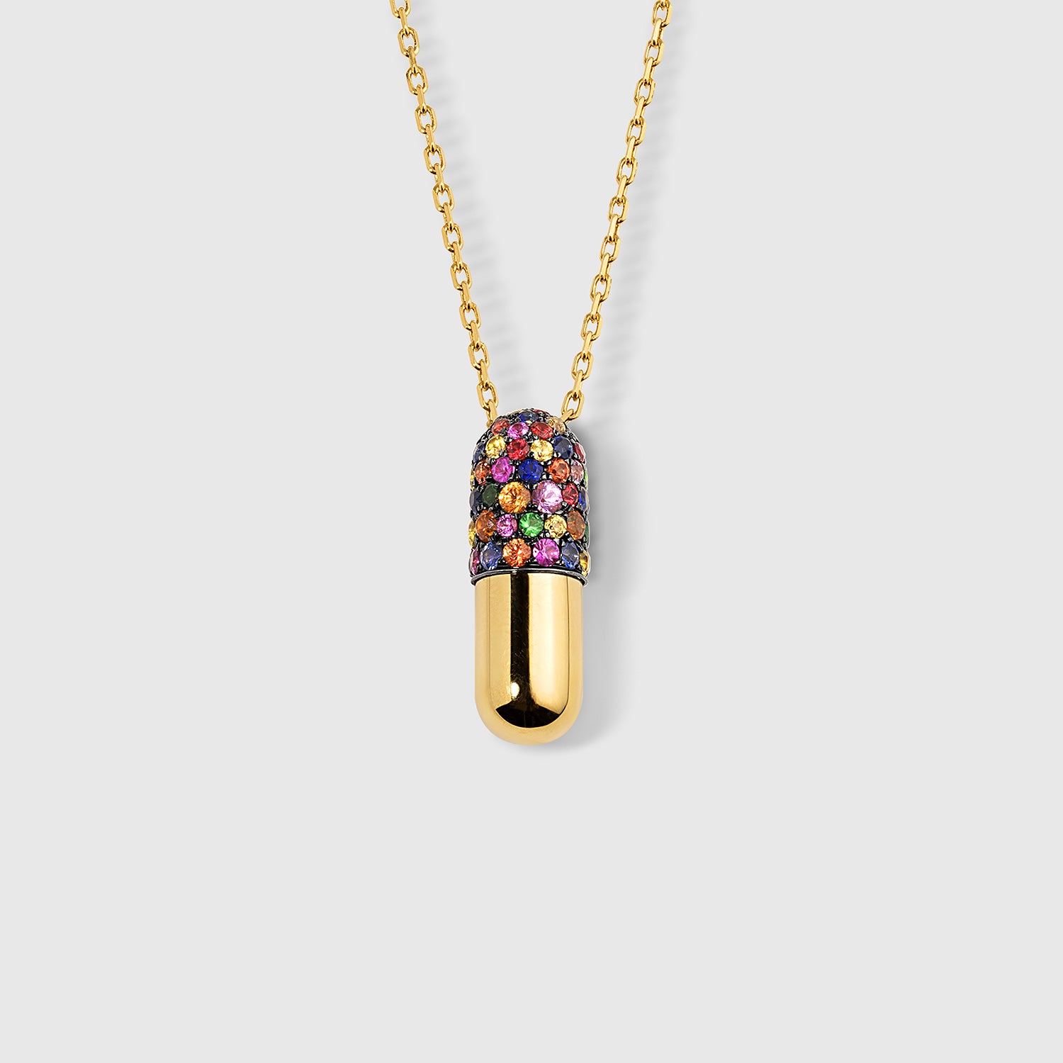 Large Multicolor Sapphire Pill Pendant in Yellow Gold