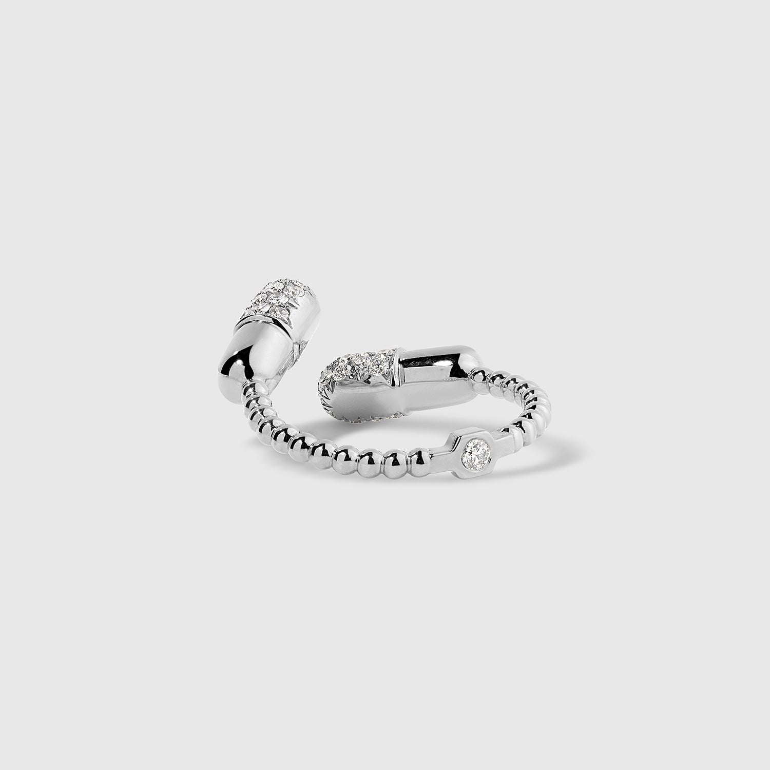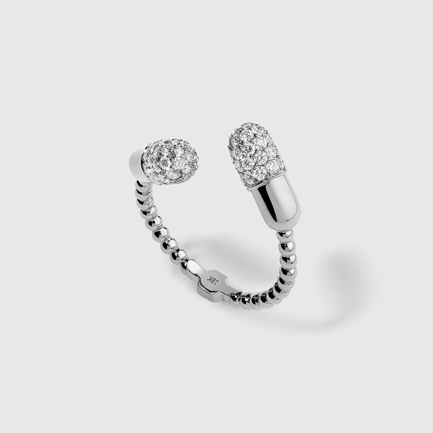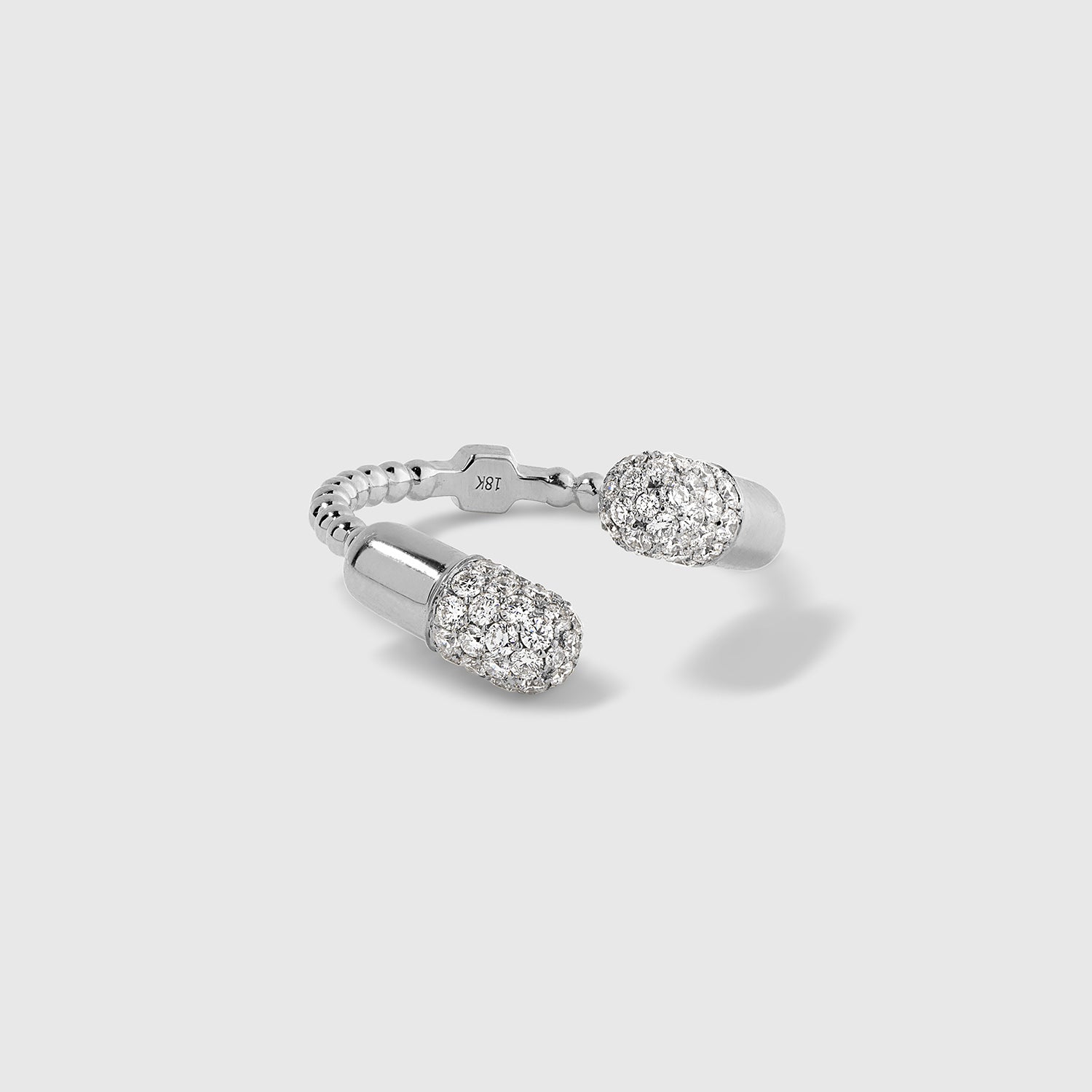 Two Pill Bypass Ring with Diamonds in 18k Yellow, White, or Rose Gold. Pavè set with approximately 1 carats of near colorless, very slightly included diamonds.