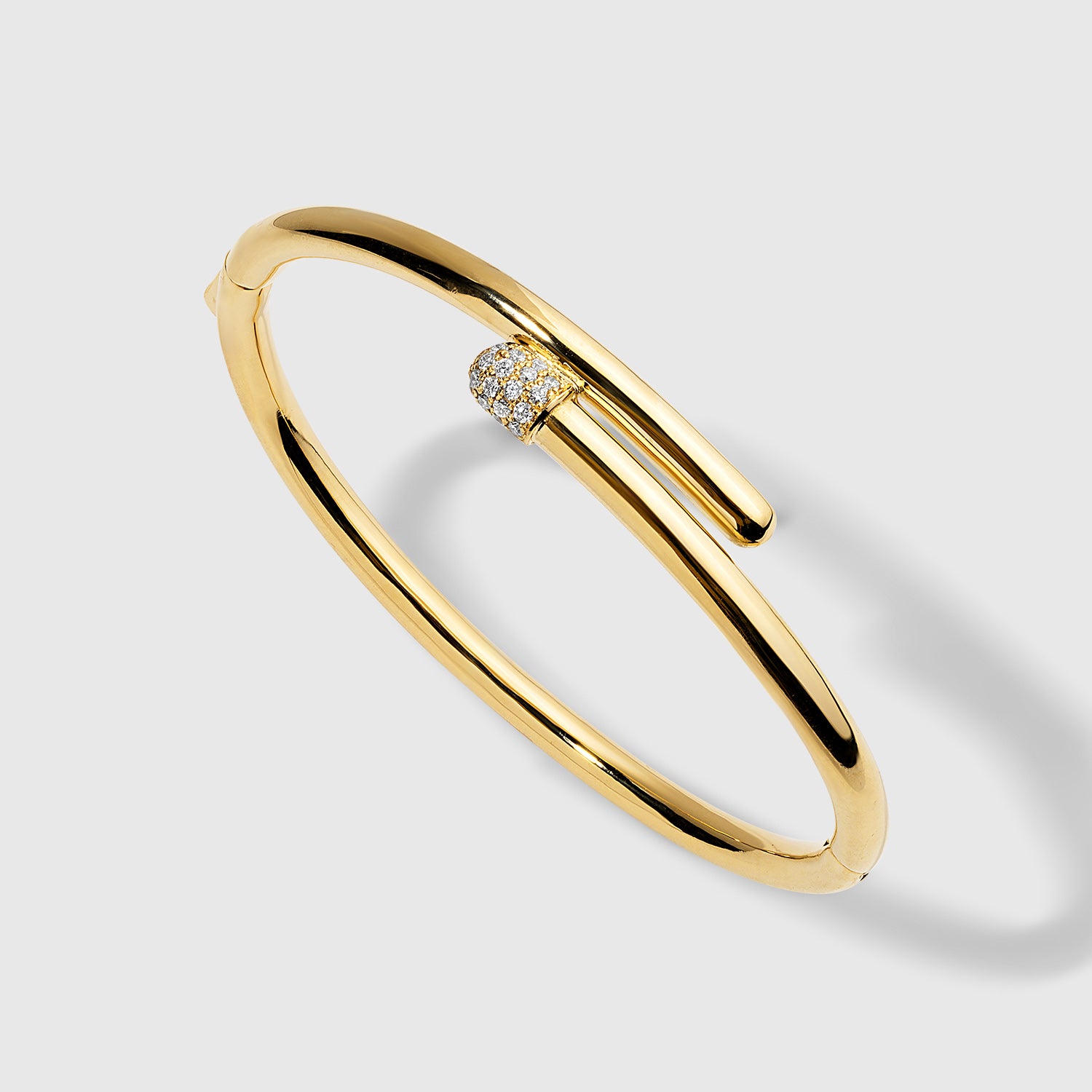 "Extrusion" Thin Bypass Pill Cuff Yelllow Gold with Diamonds